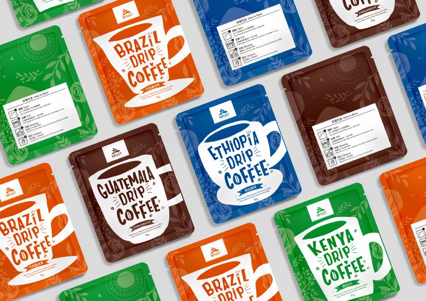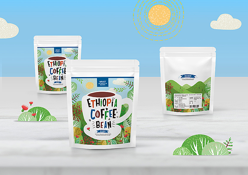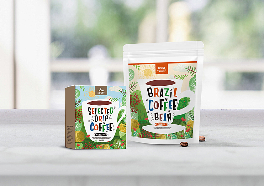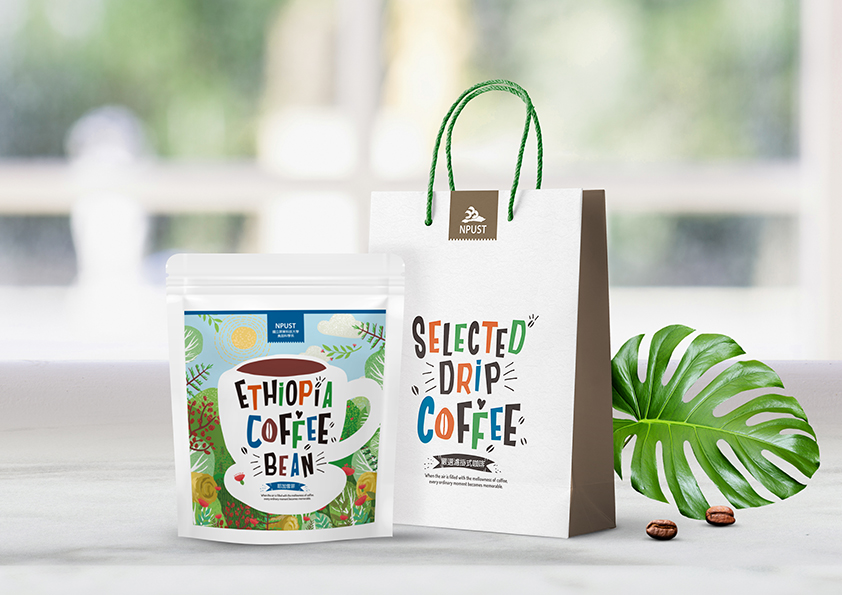 設計團隊在包裝設計上以屏東當地特色為設計元素作為發想,融入臺灣南部熱情的陽光與湛藍的藍天、遼闊的草原與牧草卷,加上花及咖啡樹等元素點綴,並以插畫的方式呈現出台灣與咖啡的融合意象。整體包裝分別有耳掛式咖啡盒、內袋包裝以及咖啡豆袋,每種不同咖啡豆分別以不同顏色及不同咖啡容器樣式來區分。