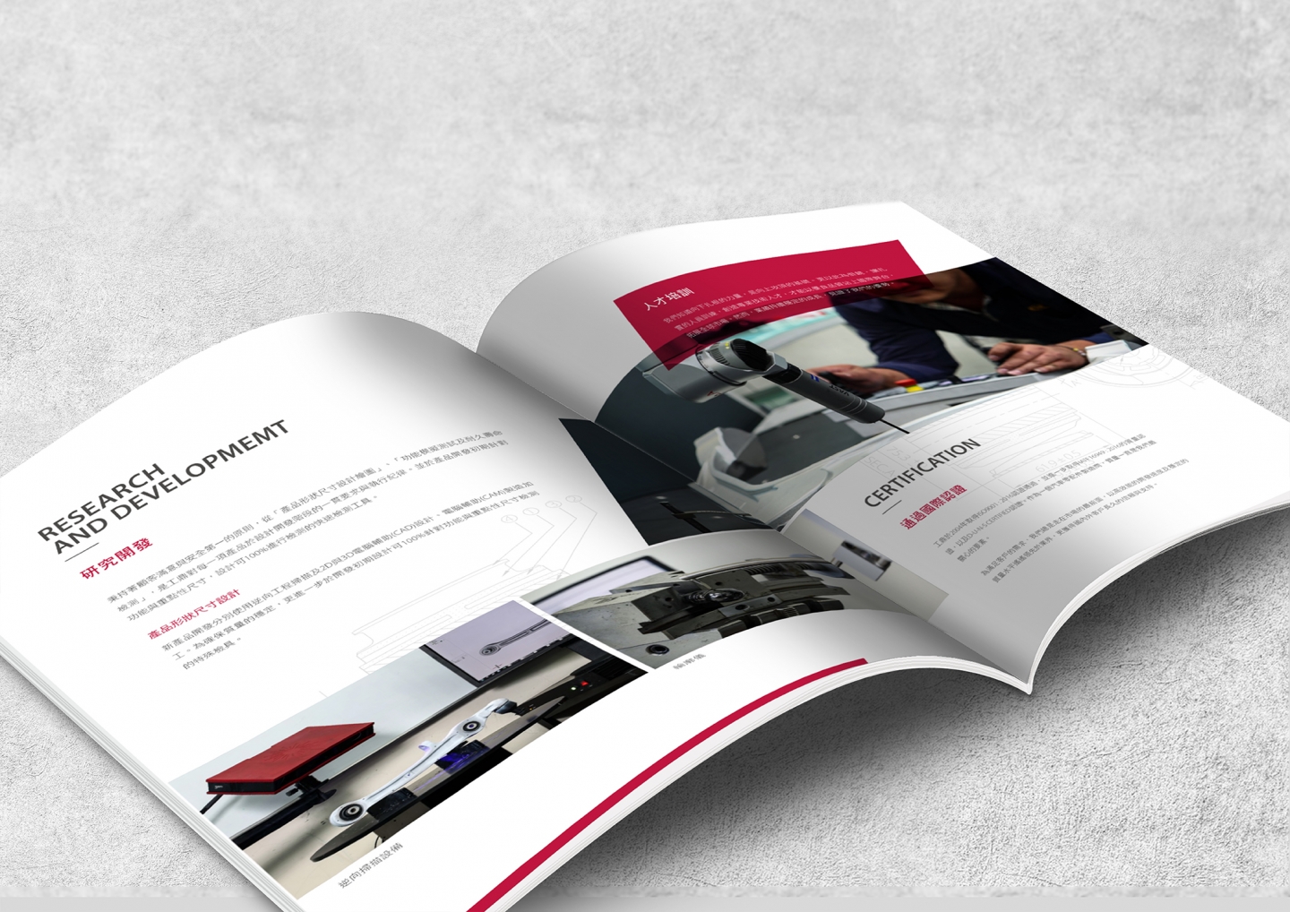 團隊在工鼎簡介視覺上帶入熱情紅的品牌色,讓工業產業融入溫度與熱情,更能展現出工鼎企業,如同不斷追求頂尖,想攻頂般的決心,也展現公司對產品努力持續研發的動力與服務熱誠。熱情紅穿梭在簡介中,使讀者感受工鼎企業的精神與努力不懈,以及熱誠的動力永不止息。