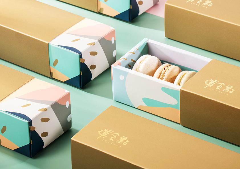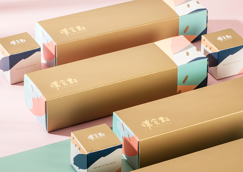 設計團隊在設計上融入了馬卡龍色彩繽紛的特色,並巧妙的將帶有「樸實的灰」加入配色當中,忠實呈現出璞實點的精神,最後加上金色來提升整體的質感,讓璞實點以反璞規真的信念得以實現。而包裝也在感性與價值兼具的氛圍之中,在消費者心中留下一個深刻的品牌記憶。